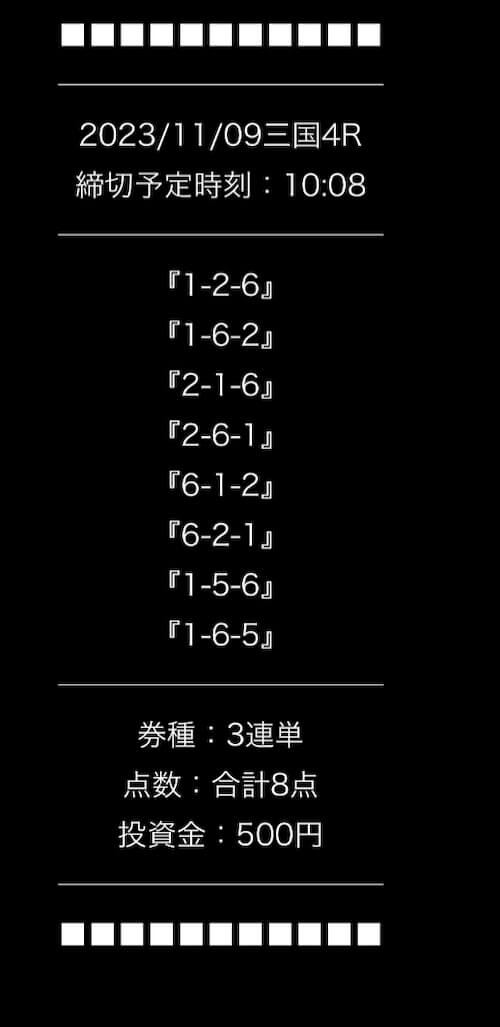 ’23/11/09 的中無料予想で11,400円獲得
