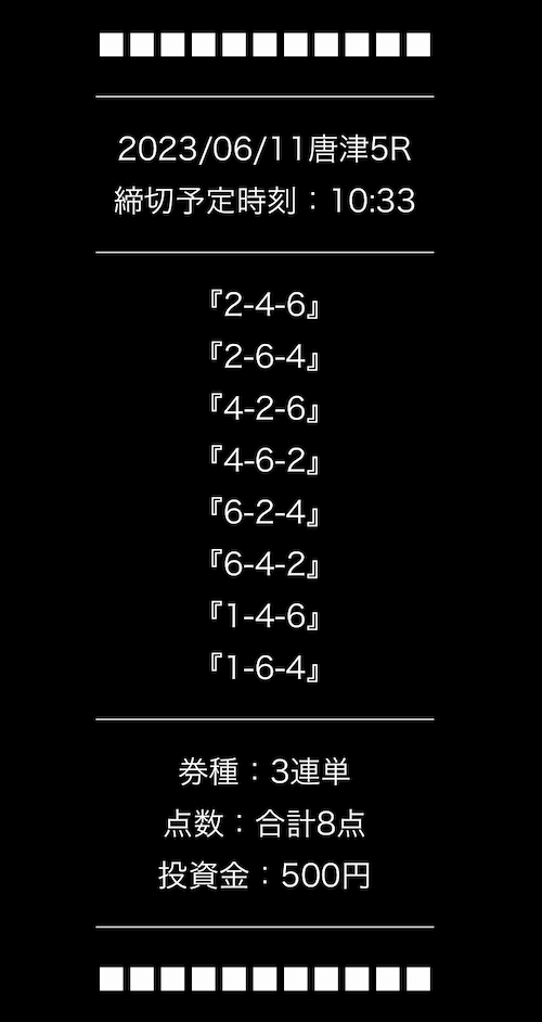 ’23/06/10 的中無料予想で37,650円獲得