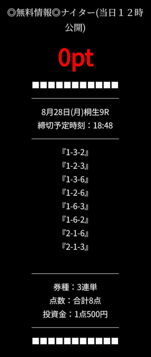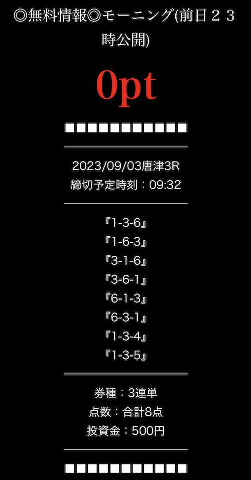 ’23/08/23 的中無料予想で23,500円獲得