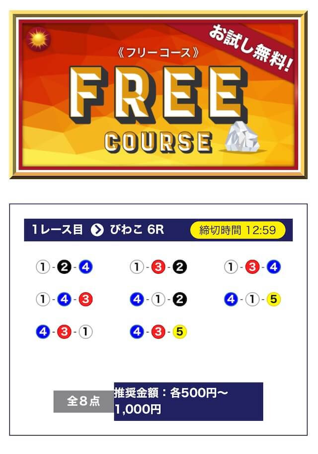 - Q2無料予想の公開頻度や提供時間は?A競艇ビッグウェーブは無料予想を毎日2レース提供しています。買い目の提供時間はデイ12:30/ナイター16:00となっていました。また、提供時間の30分前までに参加申請をしなければ買い目が見れない仕組みになっていたので注意しておきましょう。
