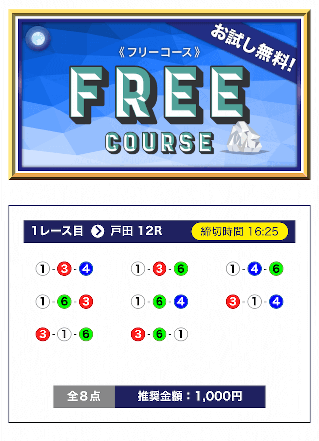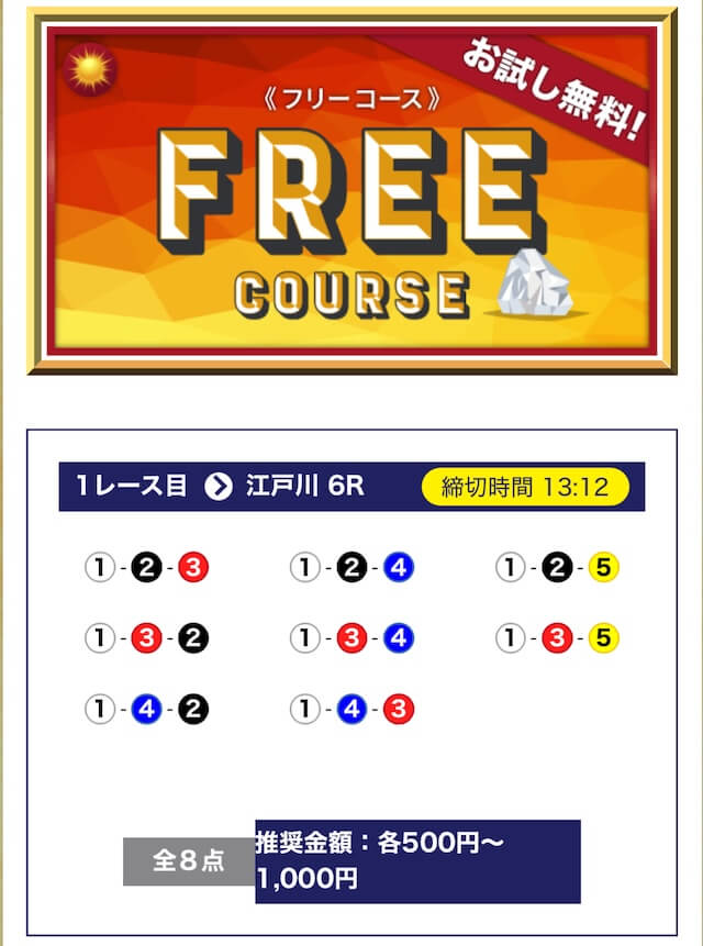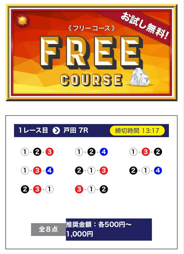 ’25/03/03 的中無料予想で13,700円獲得