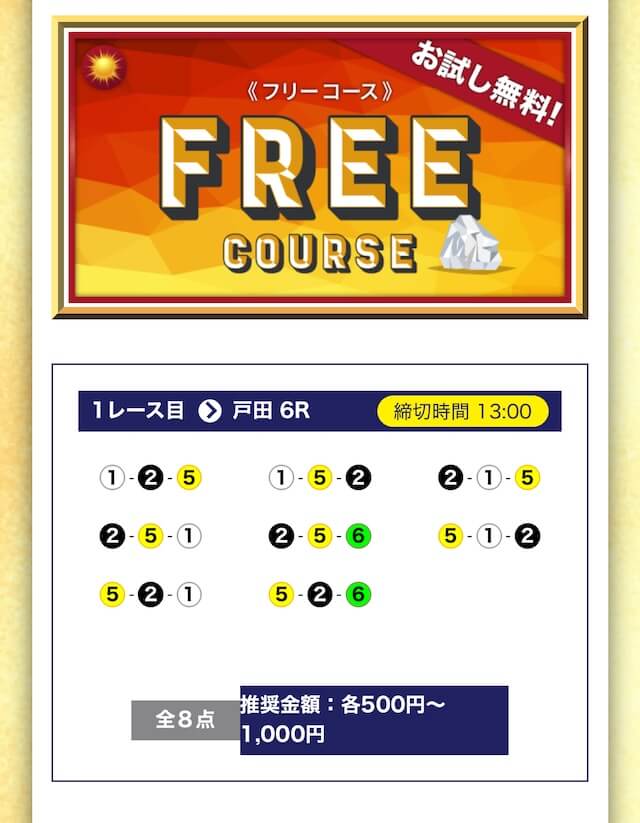 他のコメントにもあったけど、無料はそこまでおいしいと感じなかったが有料プランはすごかった。全部に参加したわけじゃないけど、トパーズとアメジストで大勝ちしました笑