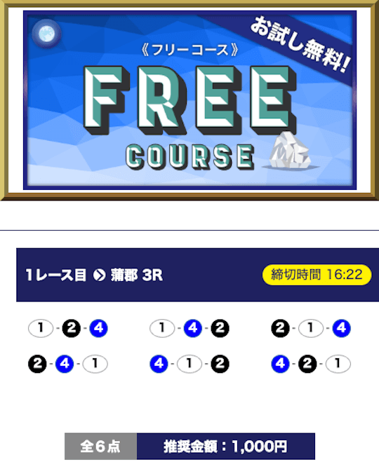 ’25/06/16 的中無料予想で126,100円獲得