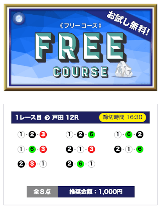 ’26/01/07 的中無料予想で8,800円獲得