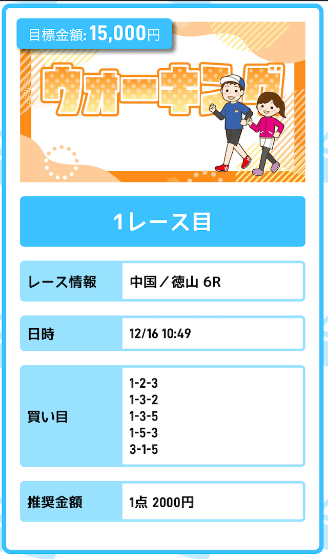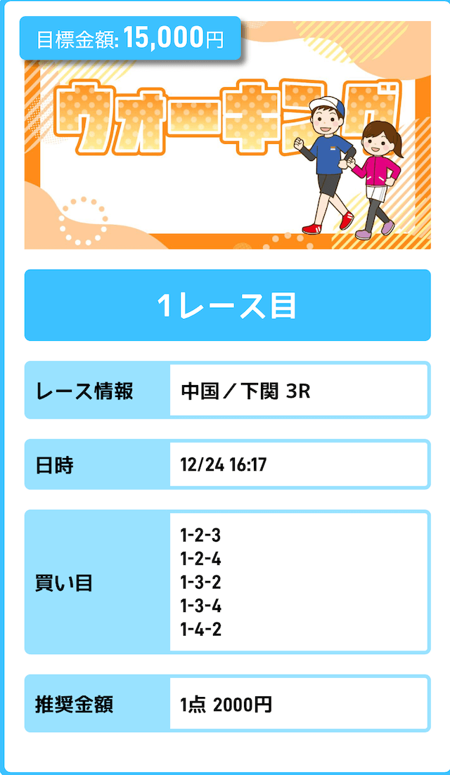 ただ「ジョギング」と「ランニング」をタップすると、購入前に必要なポイントが明記されており、無料予想でないことがわかります。