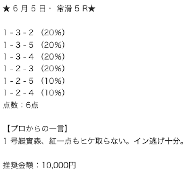 予想が単純すぎる。競艇予想って、枠とか階級以外にも考慮すべき要素あるよね?それが全く感じられない。これなら自分で予想したほうがまだまし。
