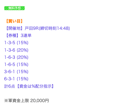 ’24/10/23 的中無料予想で143,000円獲得