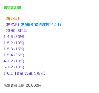’25/03/26 的中無料予想で89,400円獲得