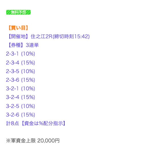 ’25/08/06 的中無料予想で53,200円獲得