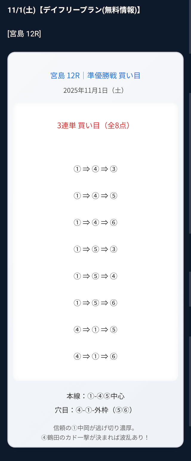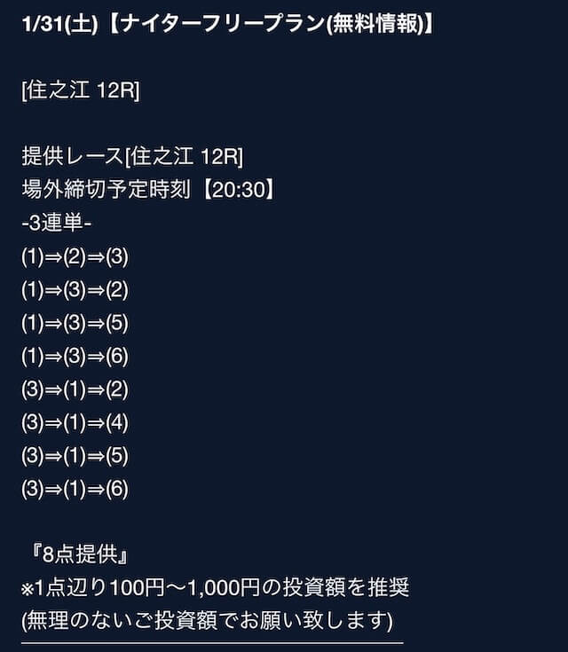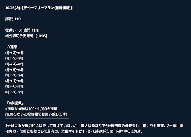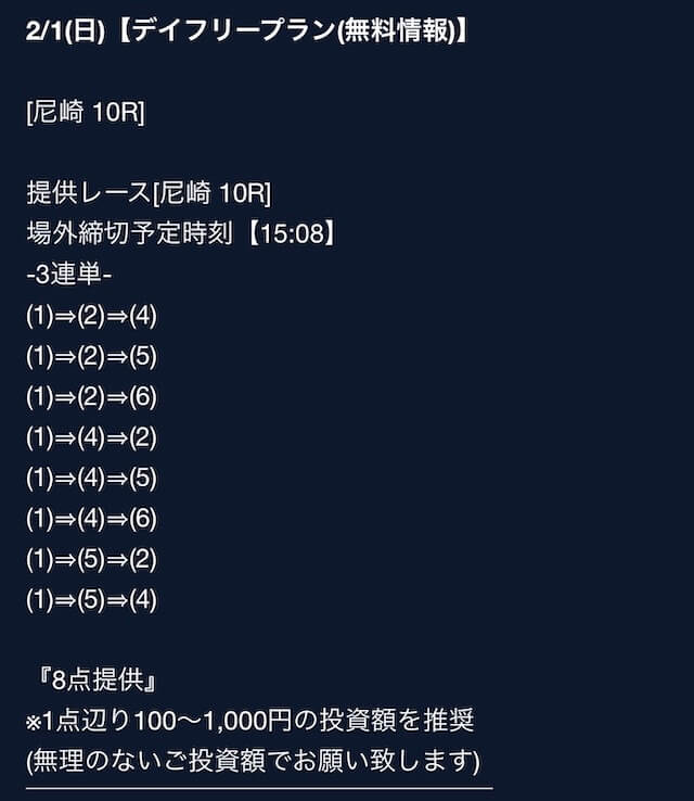 ただ、有料の一番上結構情報料が高いな、、、。一攫千金ねらえるんだとおもうけど、俺にはまだ早そう。とりあえず資金を増やすとかから始めるよ。 -
