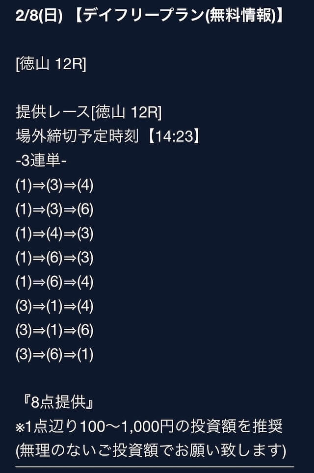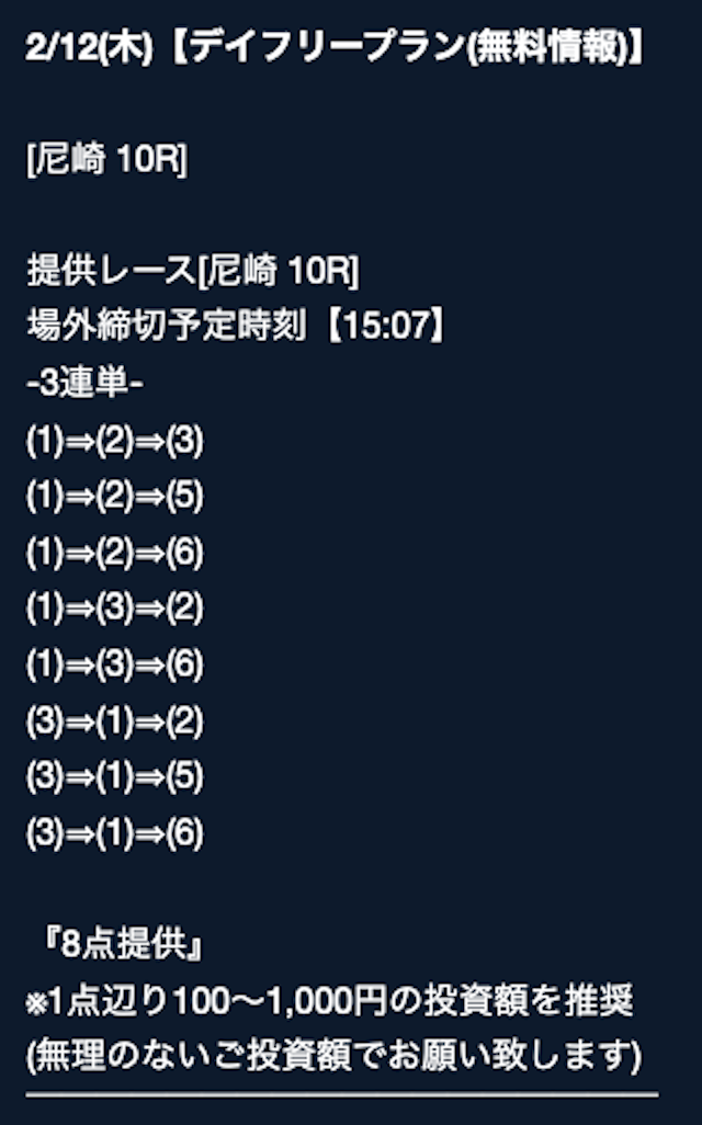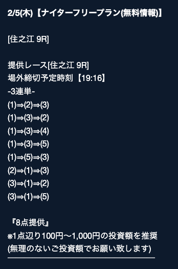 ’25/11/09 的中無料予想で8,000円獲得