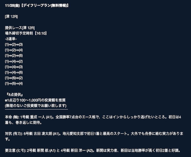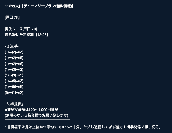 ’25/11/29 的中無料予想で35,100円獲得