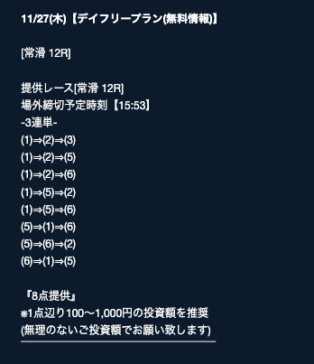 ’25/11/09 的中無料予想で8,000円獲得