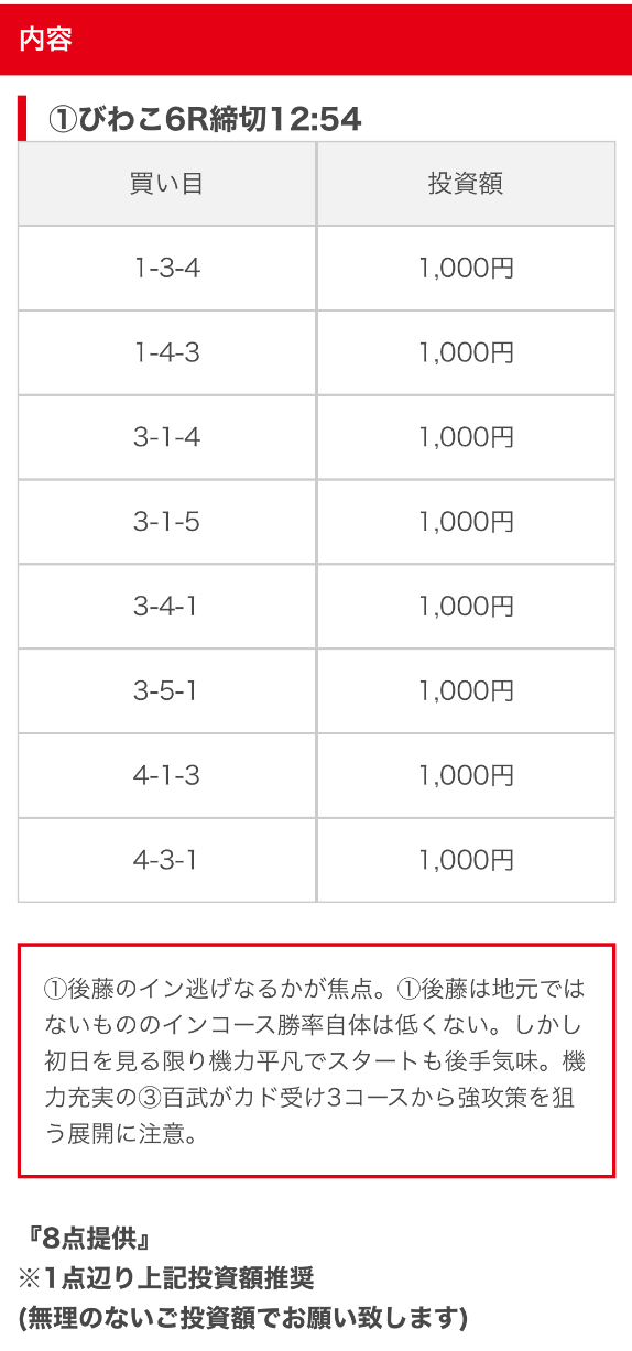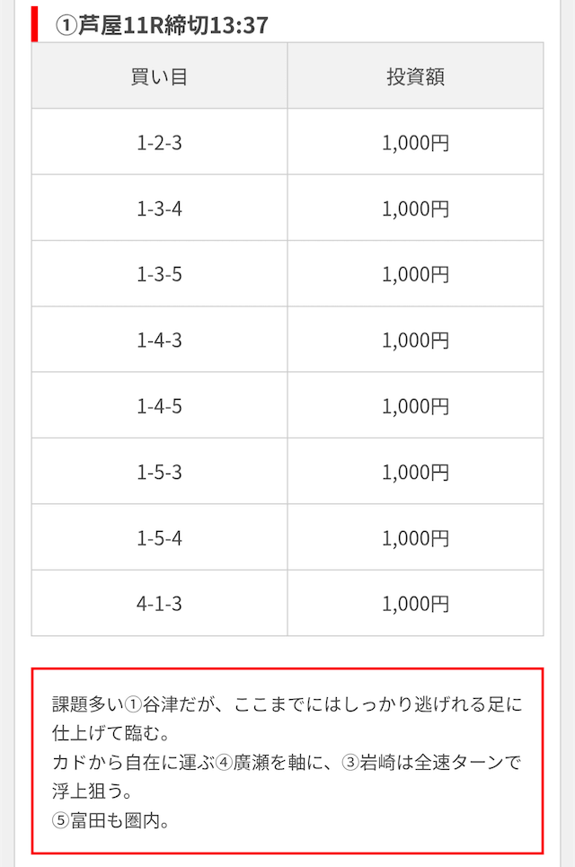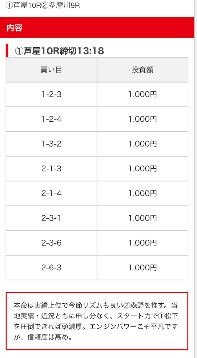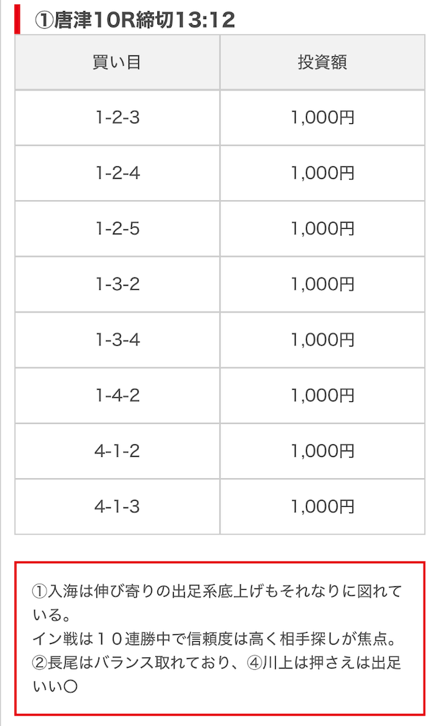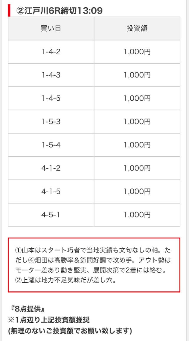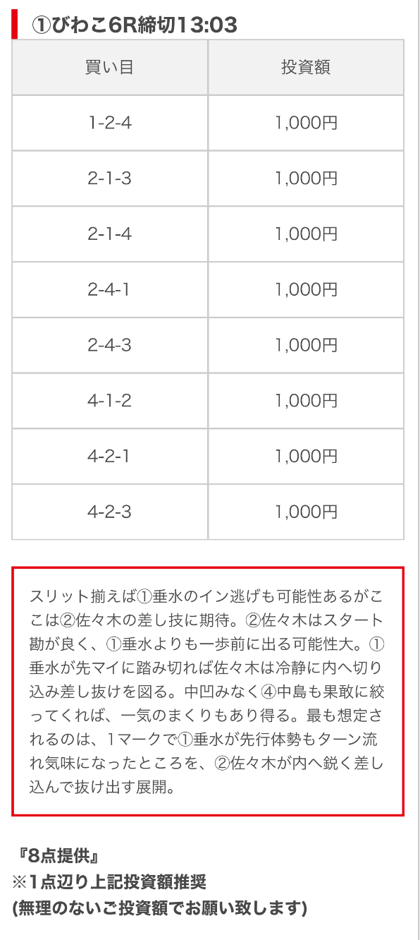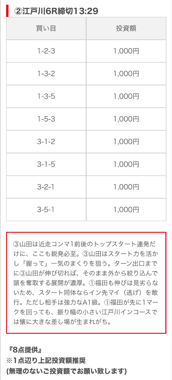 具体的には、人気決着から妙味の出る波乱決着も狙えるレース選びと、それにマッチするバランスの取れた買い目作成で効率よくユーザーを稼がせるようです。