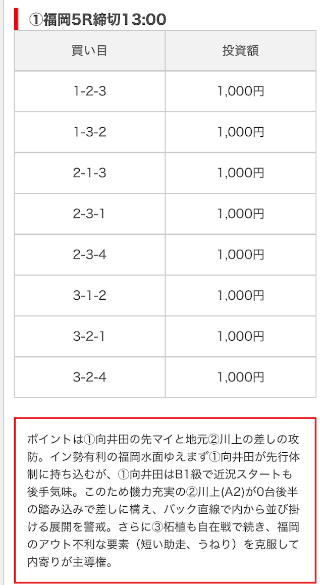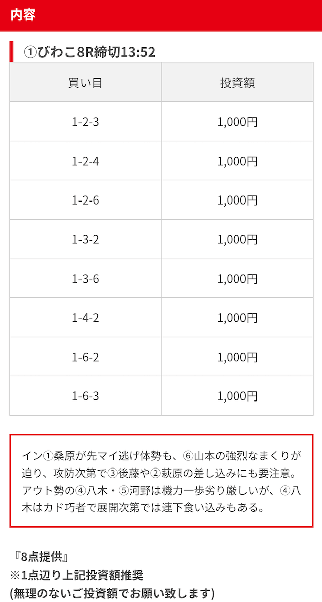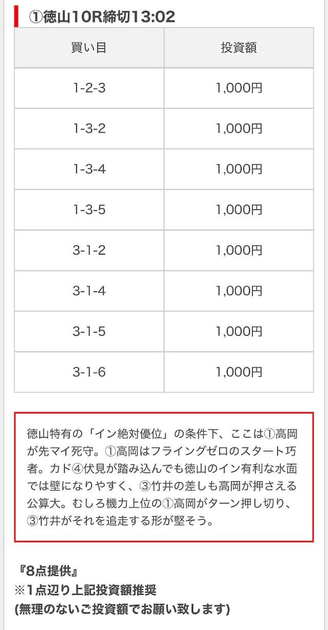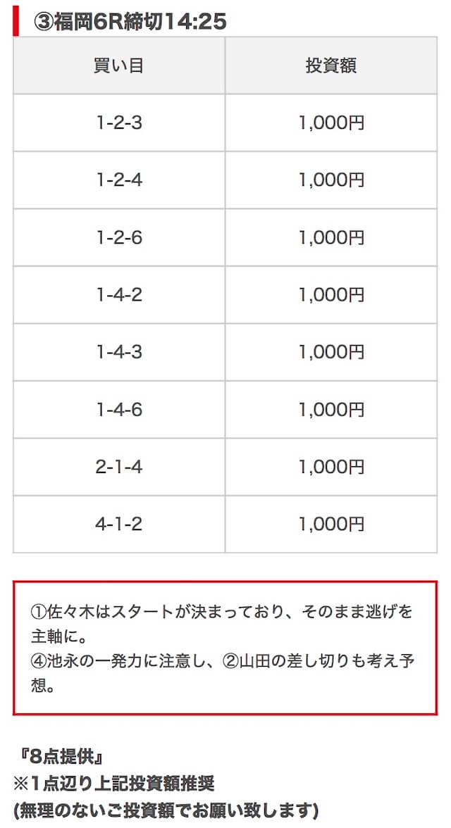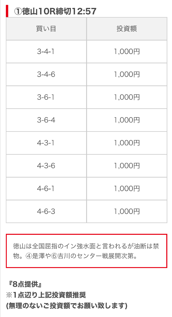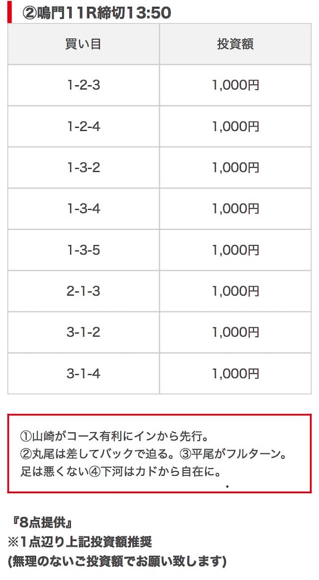 具体的には、人気決着から妙味の出る波乱決着も狙えるレース選びと、それにマッチするバランスの取れた買い目作成で効率よくユーザーを稼がせるようです。