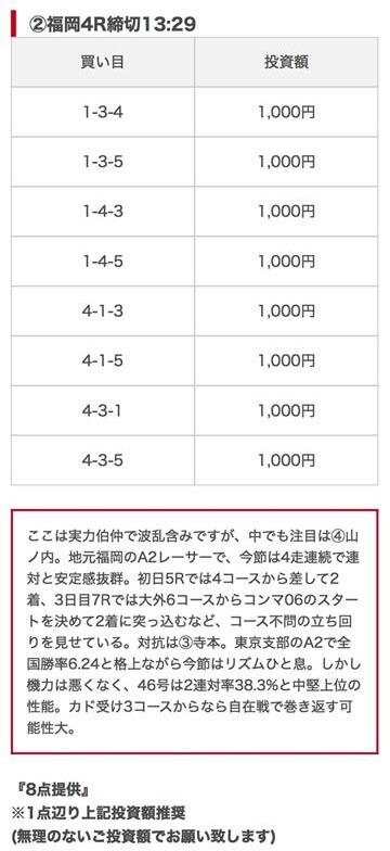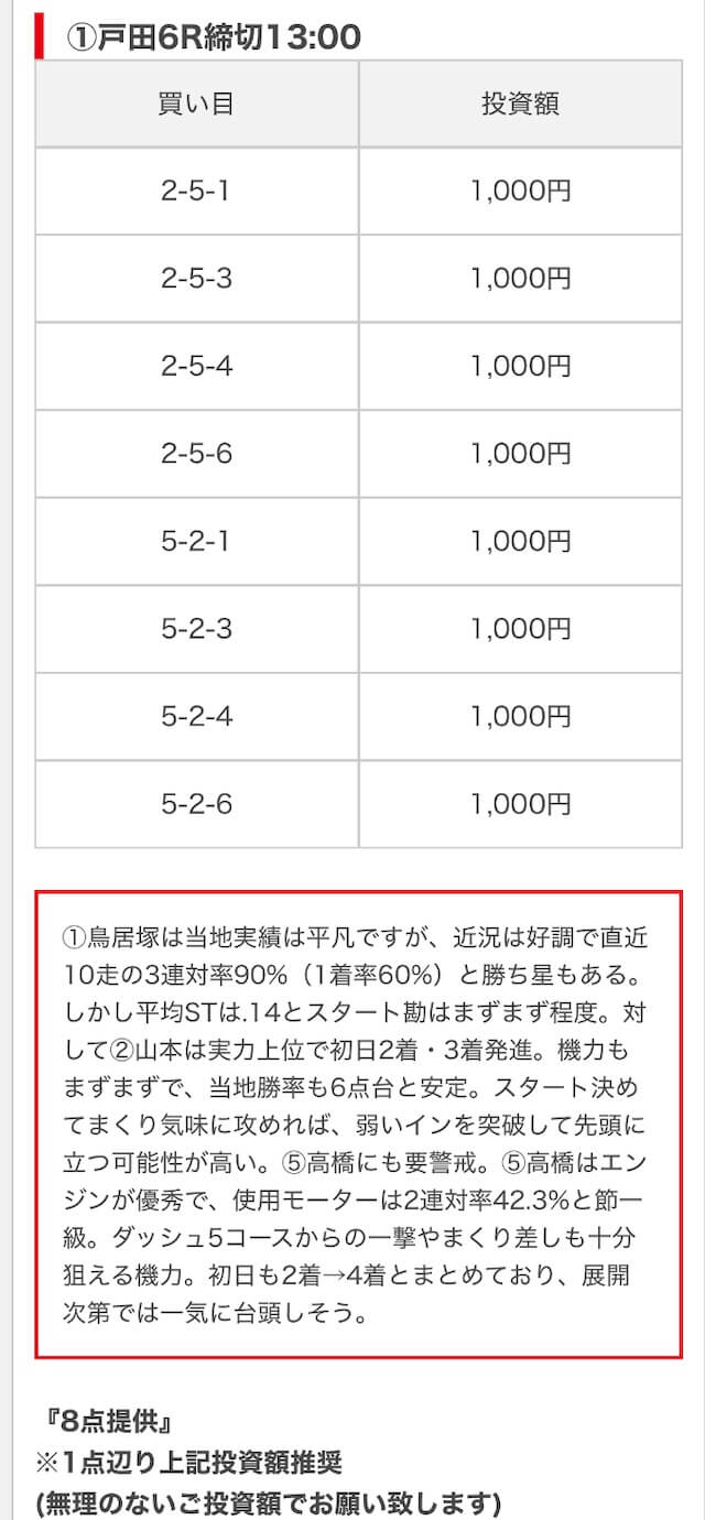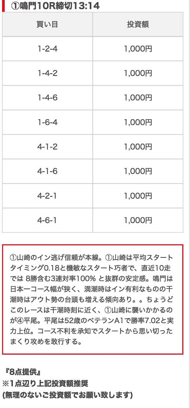 ユーザーの目線にたてば、1度に10万円・20万円決済できる競艇予想サイトよりも、はるかに良心的なサイトと言えるでしょう。