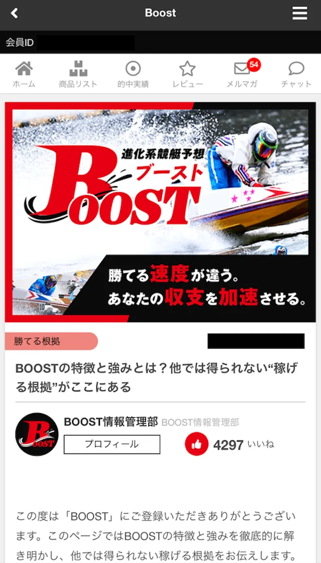 競艇ブーストの非会員ページには具体的な特徴や強みが記載されていません。