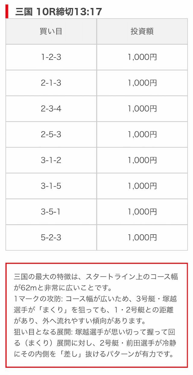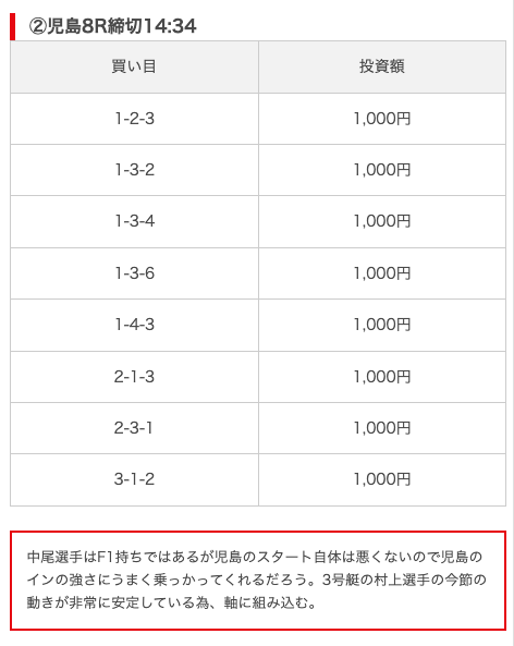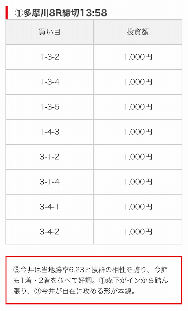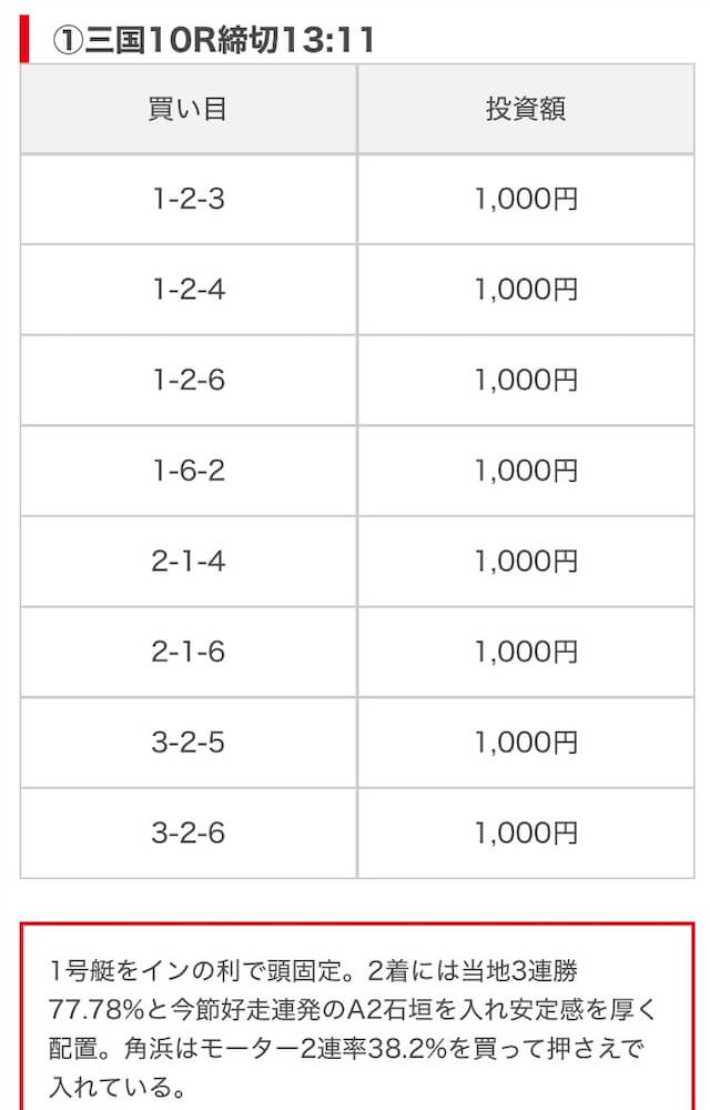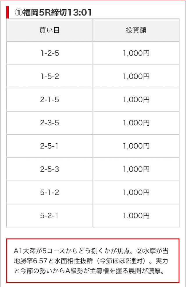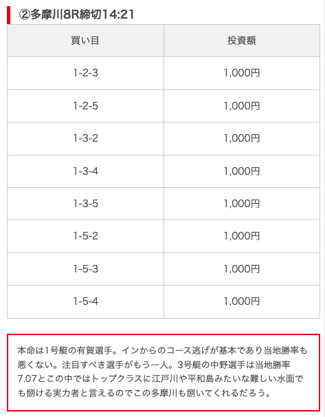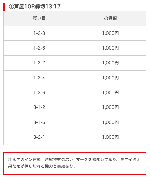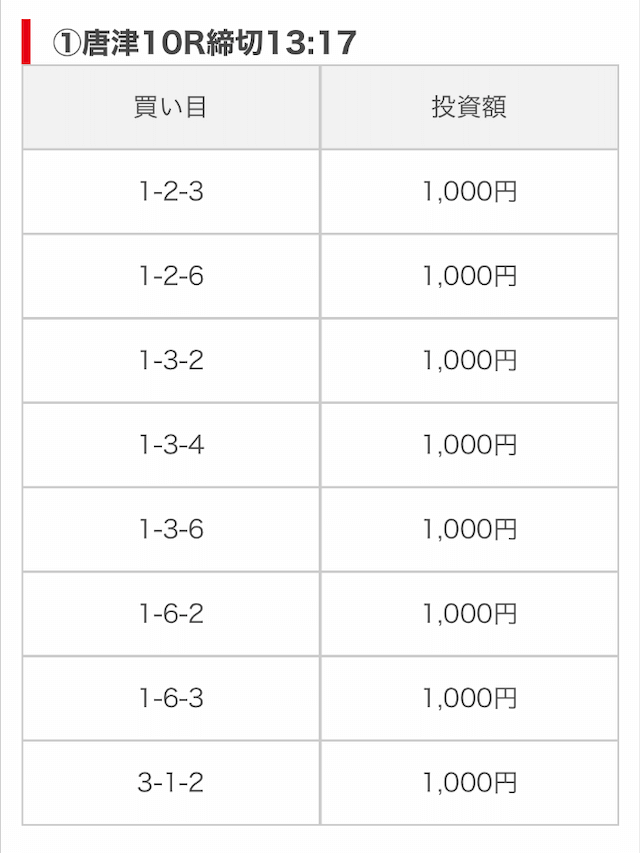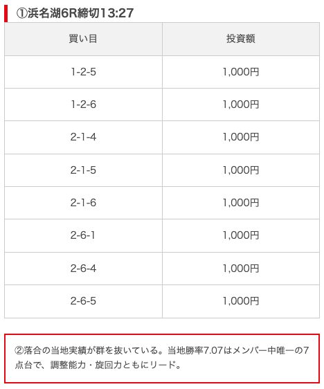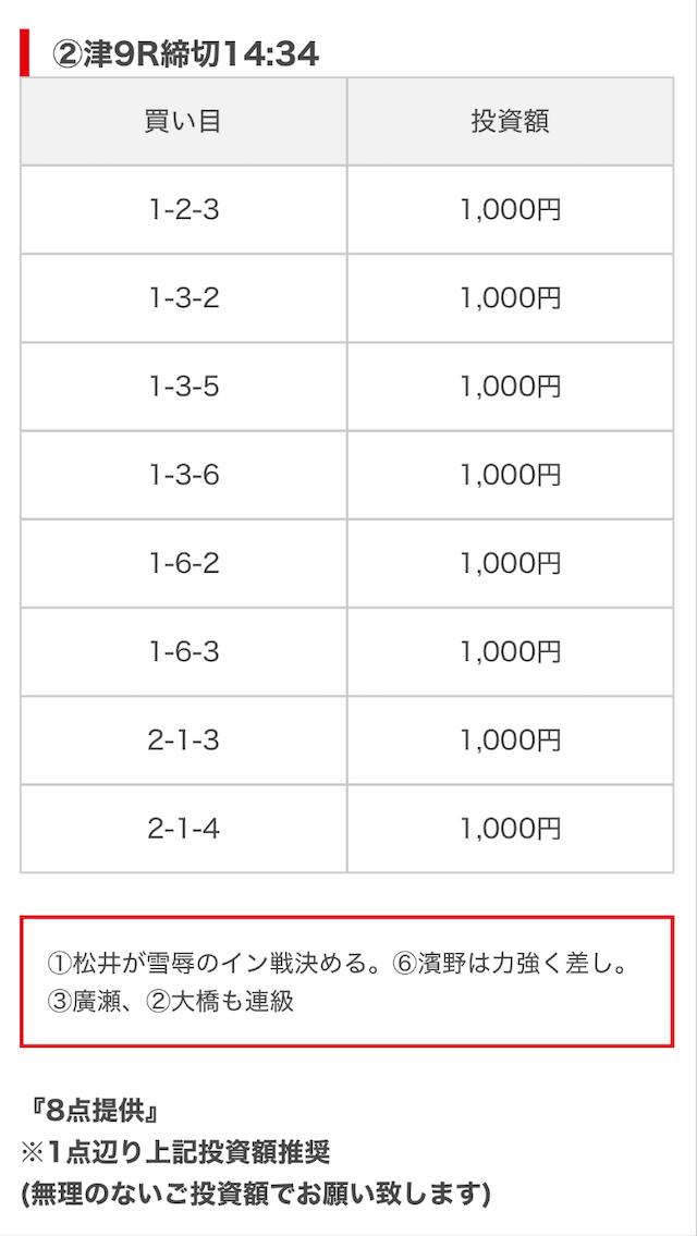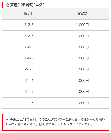 | 買い目点数 | 6~8点 |