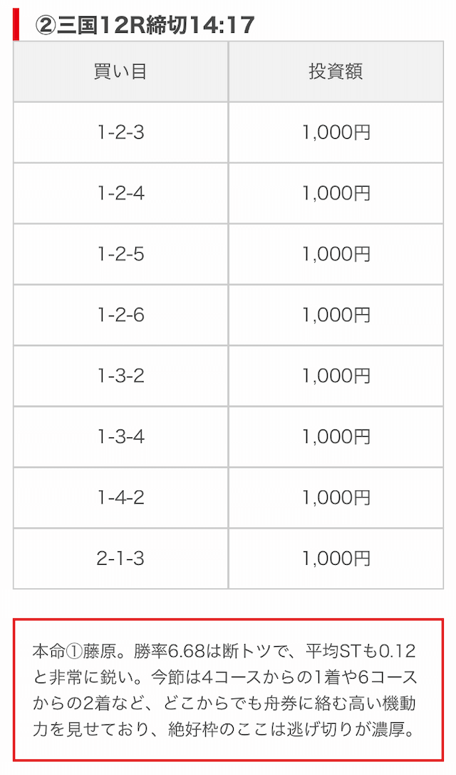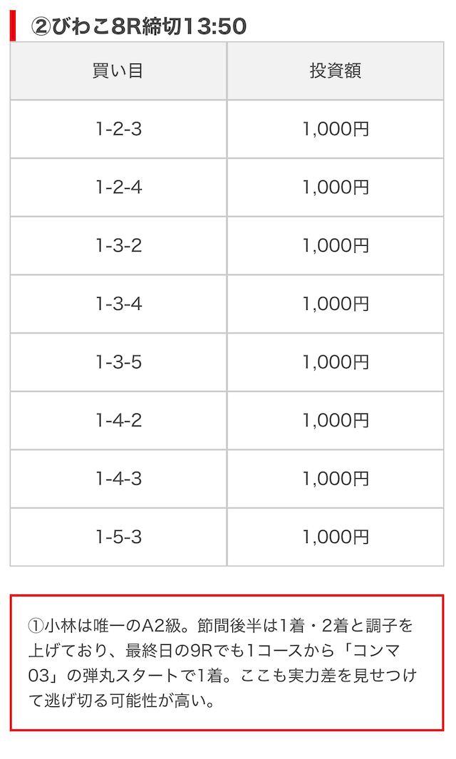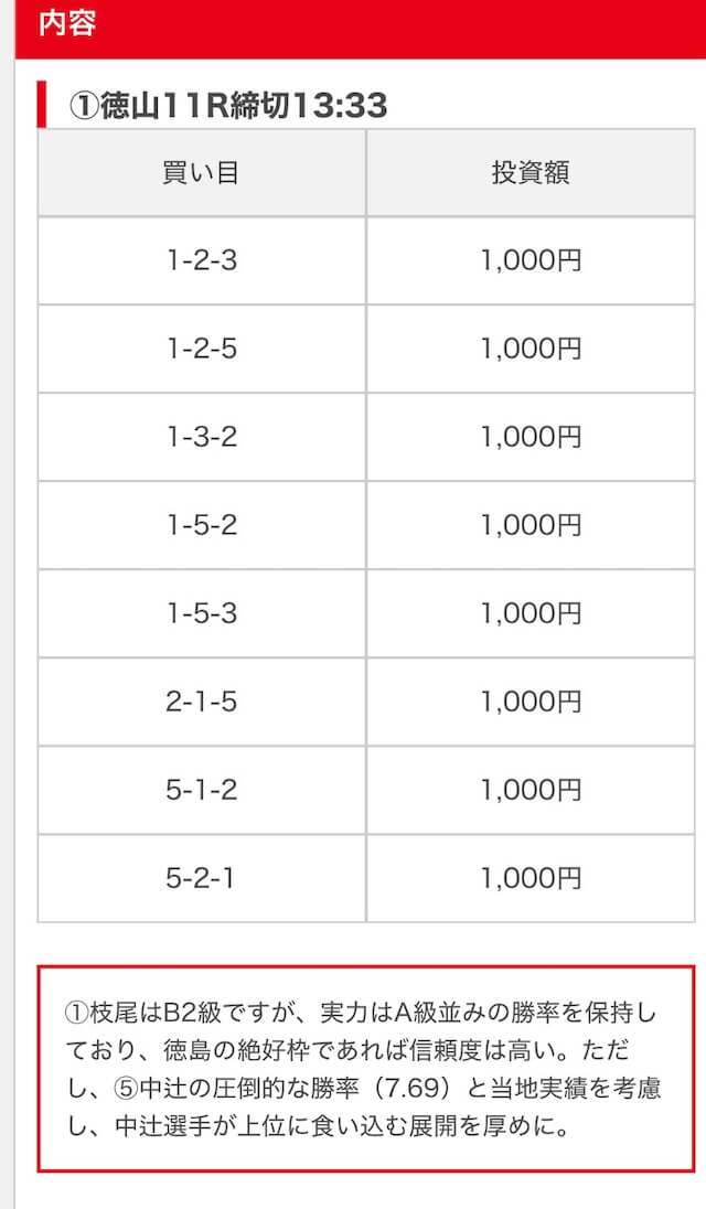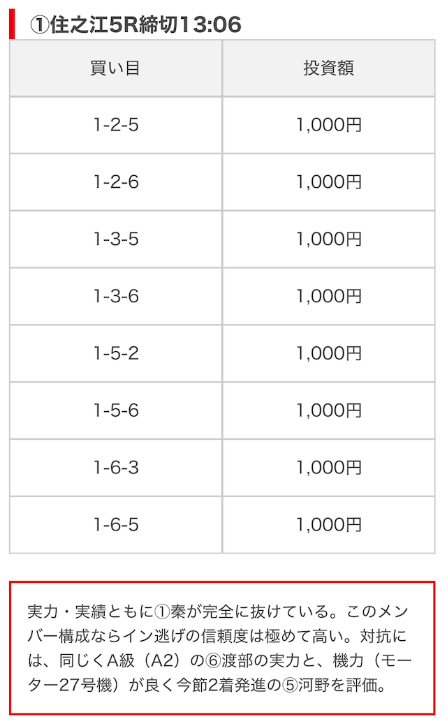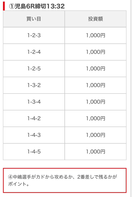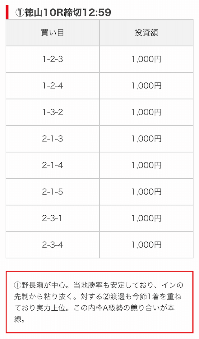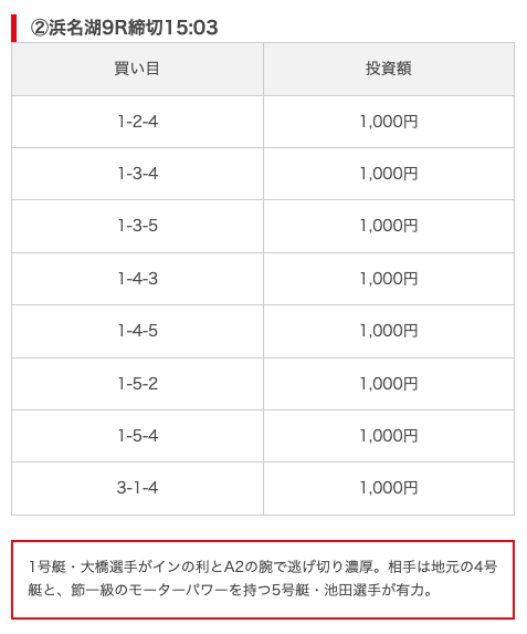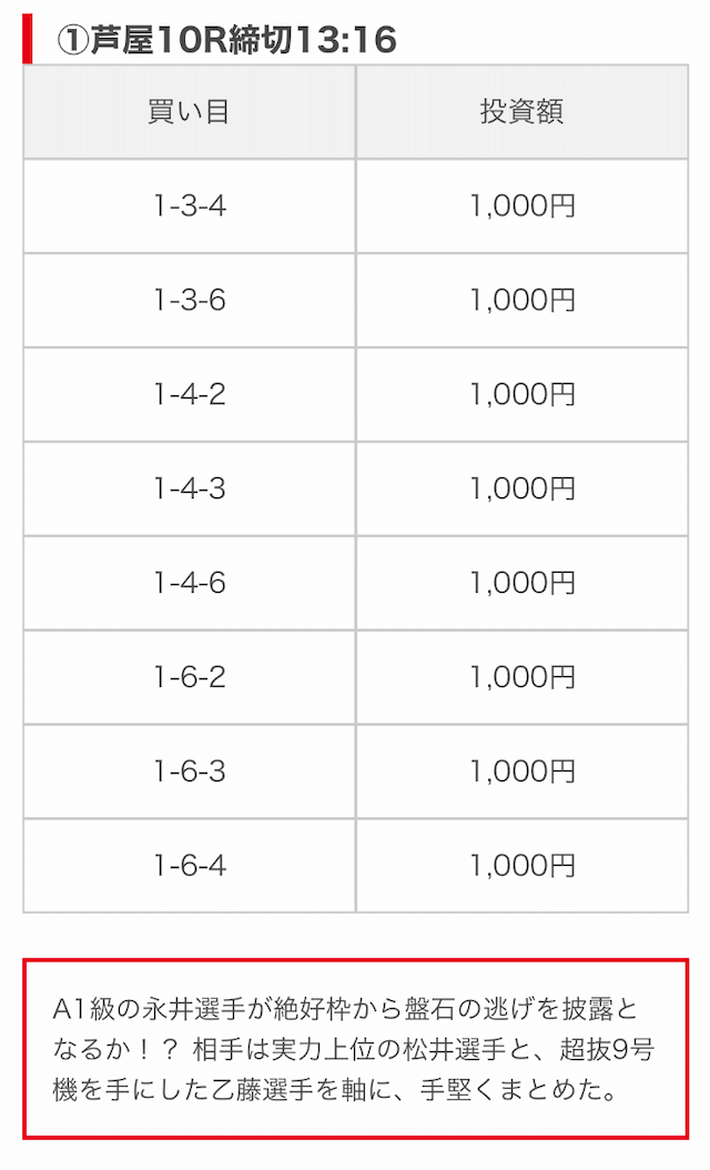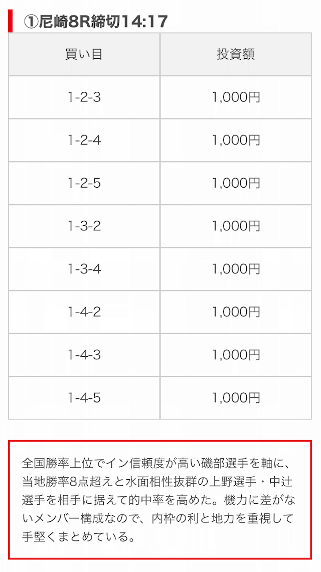 | 買い目点数 | 6~8点 |