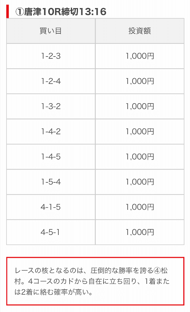 | 推奨投資金額 | 1点1,000円 |