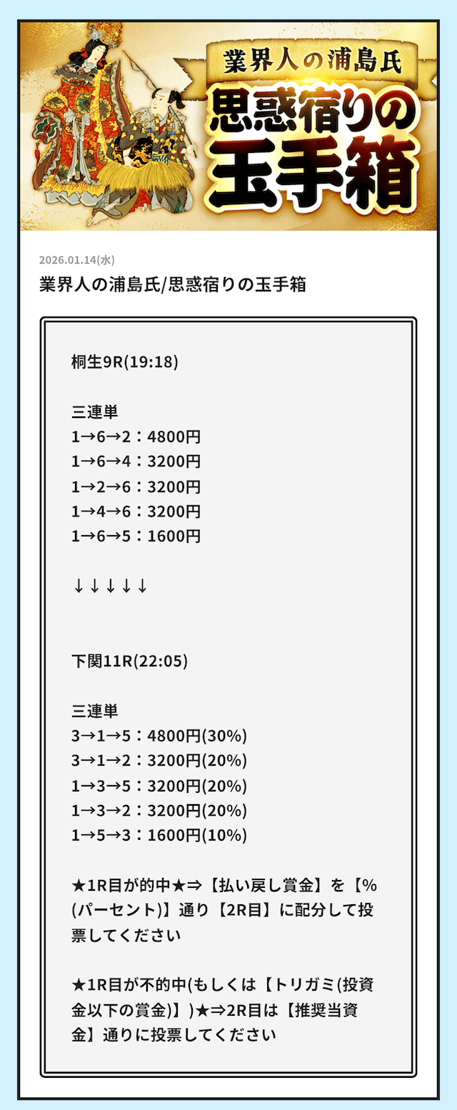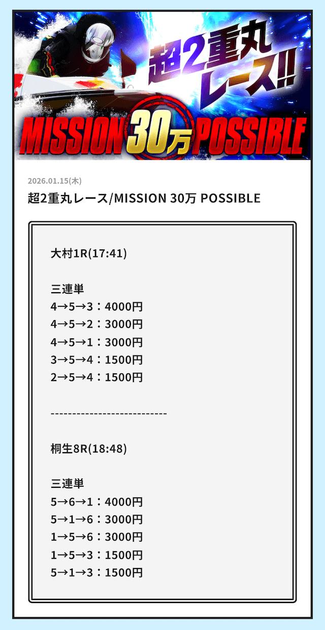 無料予想でももっとインパクトほしい。 - 2026/01/15