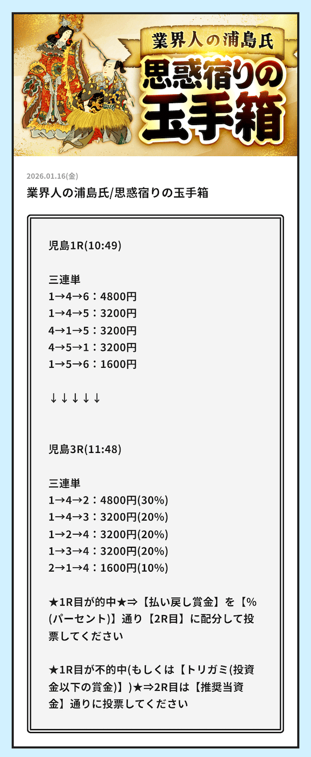 ’26/01/16 的中無料予想で41,200円獲得