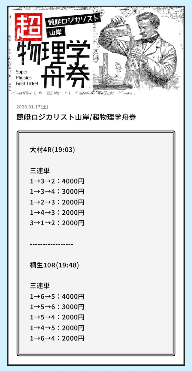 ’26/01/17 的中超物理学舟券で86,400円獲得