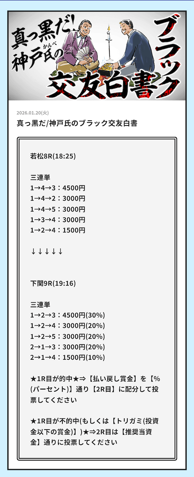 ’26/01/20 的中無料予想で45,600円獲得