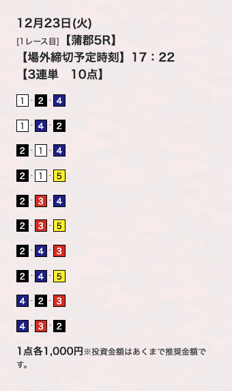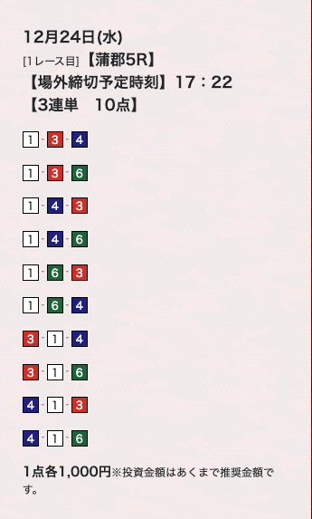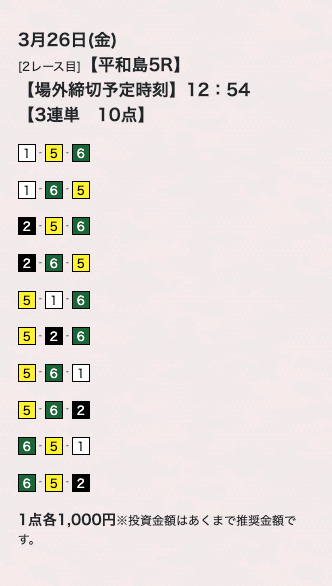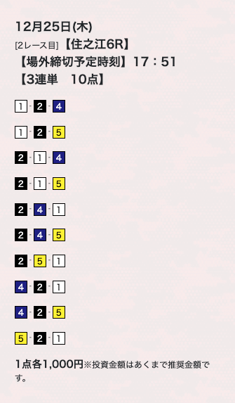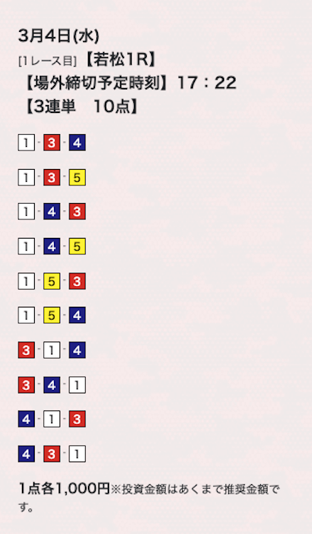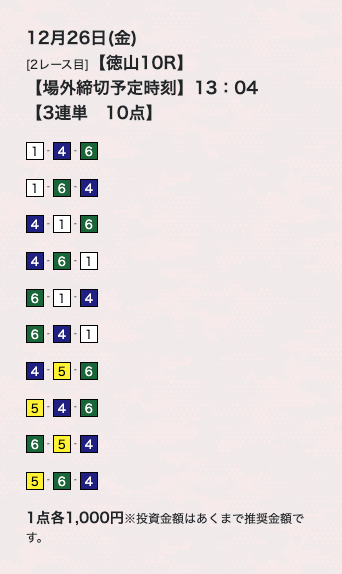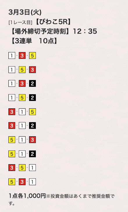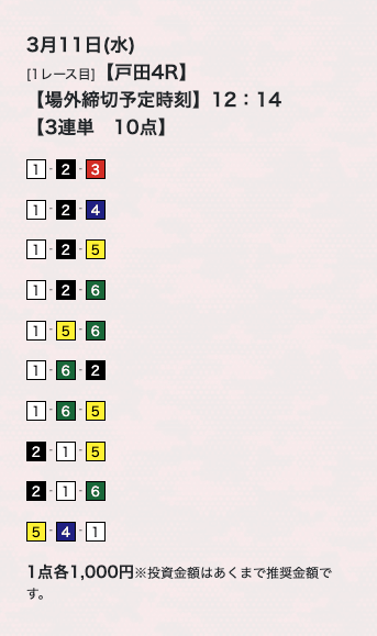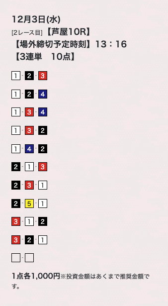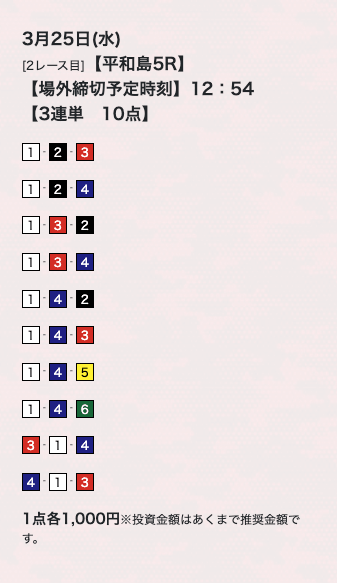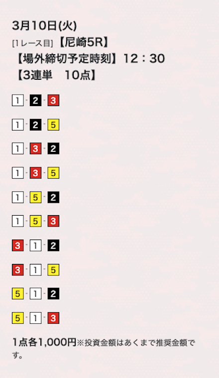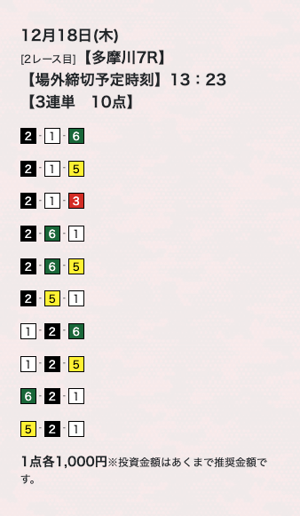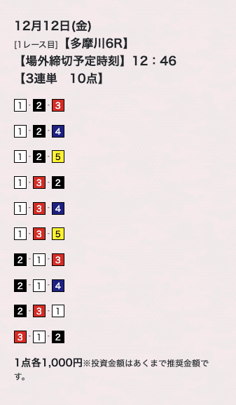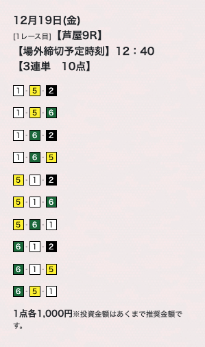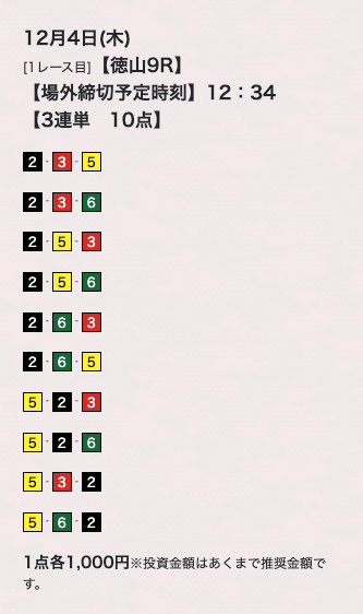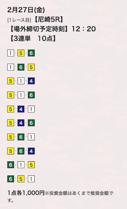 10点くらいで買い目公開してるけど、もうちょっと絞ってくれたらな。
