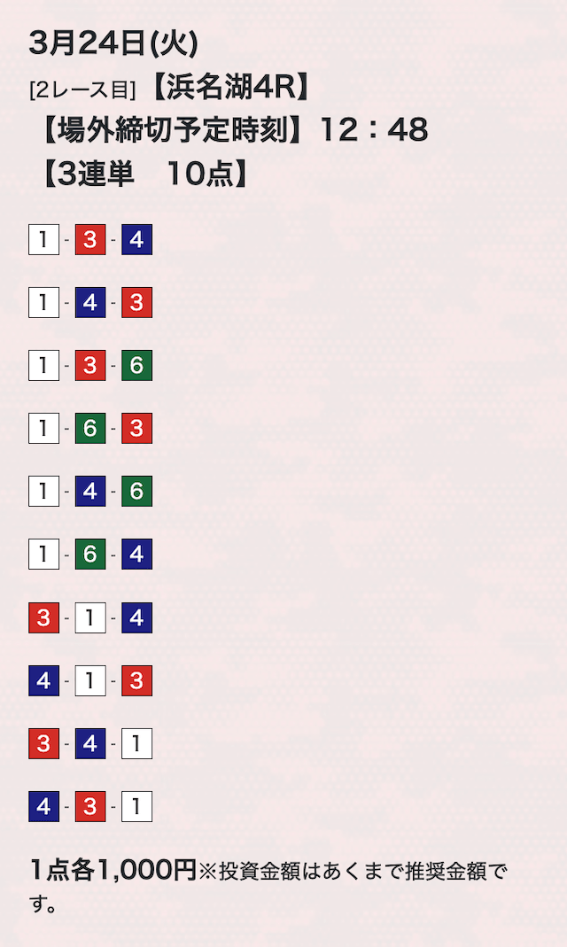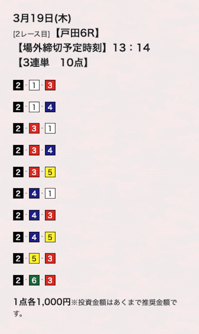 ’26/03/24 的中無料予想で21,900円を獲得