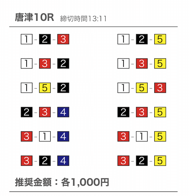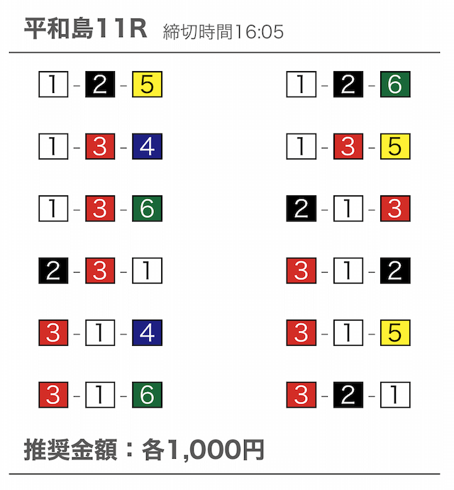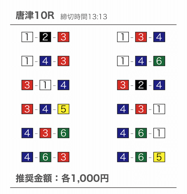 4レース全部参加した場合は、回収率100%下回る可能性高いです。たまに、買い目に違和感あるので、そのレースは避けるのが無難に感じます。当方、このやり方で11月回収率225%、12月回収率168%でした。
