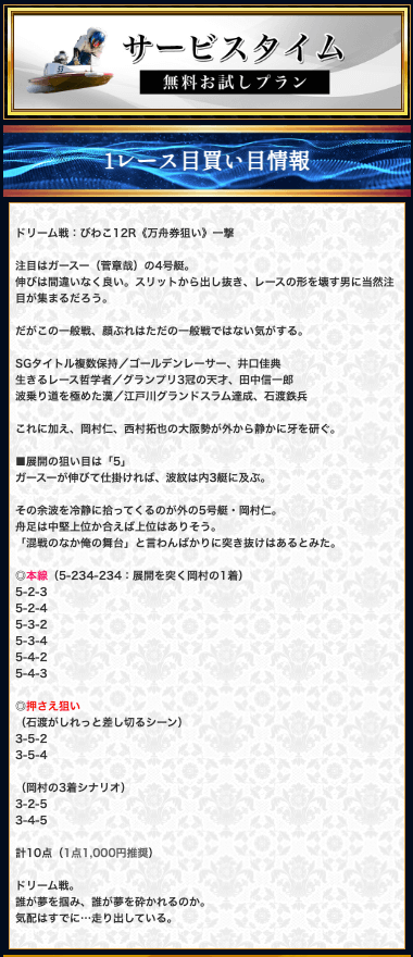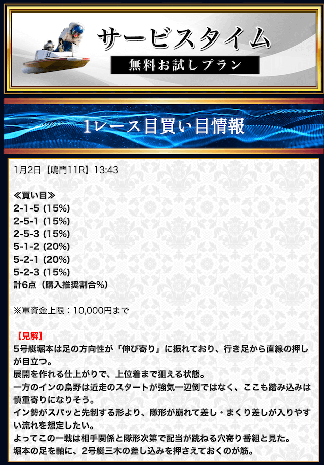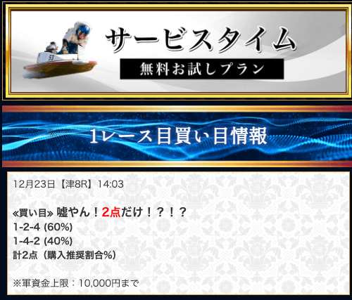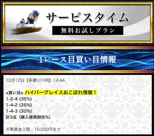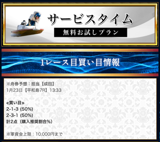 競艇予想サイトは詐欺ばかりと聞いていたので、正直期待していなかったですが案外コスパが良いなと思いました。