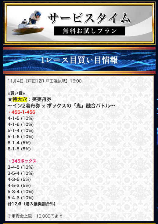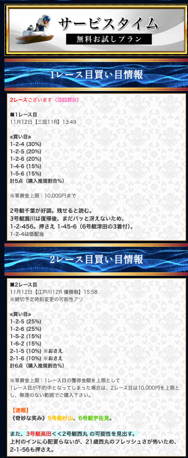 ’23/11/12 的中無料予想で53,500円獲得