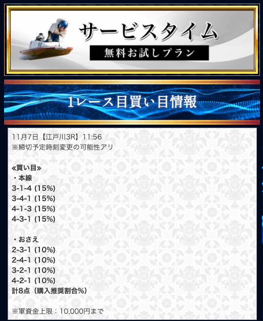 ’23/11/08 的中無料予想で34,650円獲得