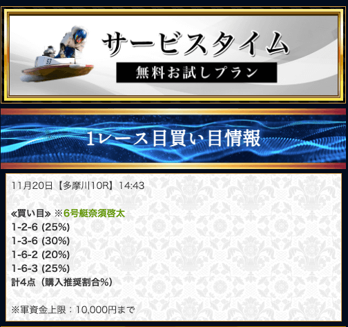 ’25/11/20 的中無料予想で53,700円獲得