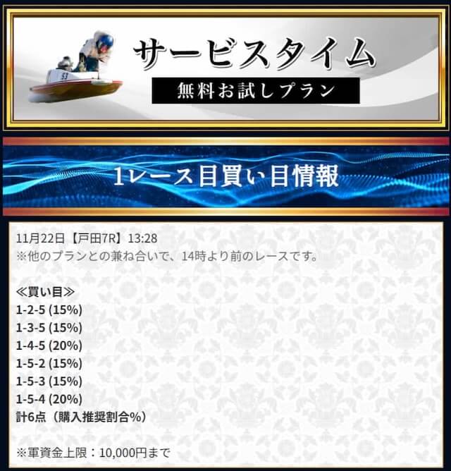 ’25/11/22 的中無料予想で23,600円獲得