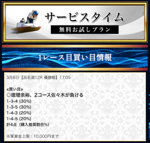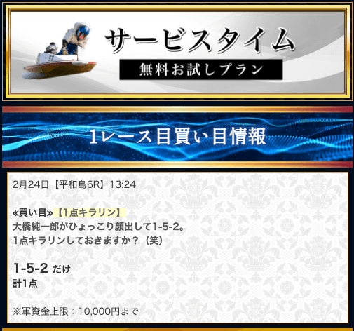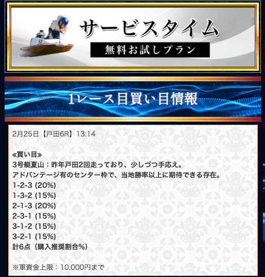 競艇予想サイトは詐欺ばかりと聞いていたので、正直期待していなかったですが案外コスパが良いなと思いました。