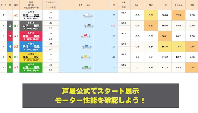 スタート展示でインの行き足が良い選手がいれば、その信頼度は一段と高まります。
