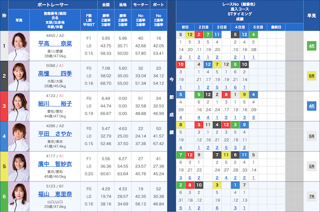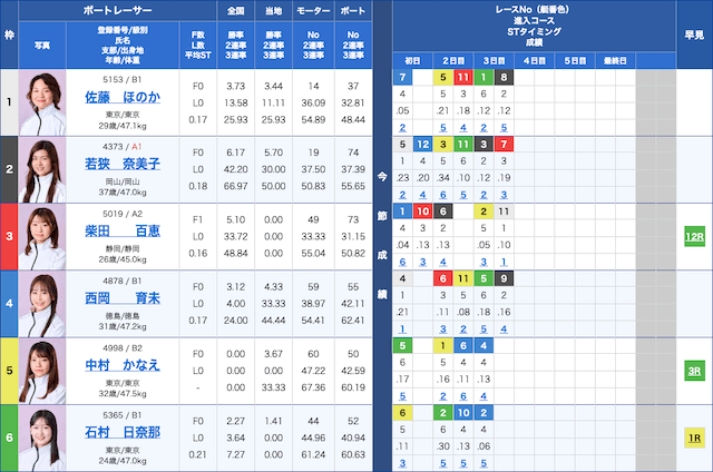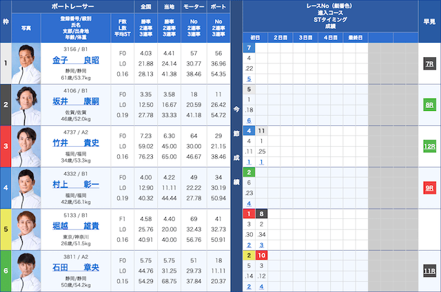 平和島4発走予定時刻 12:22