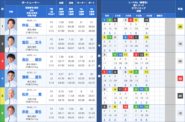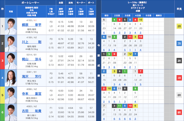 | 住之江 | 2–4–1 | 1.0% | 10,942円 | 109% |