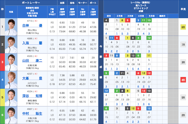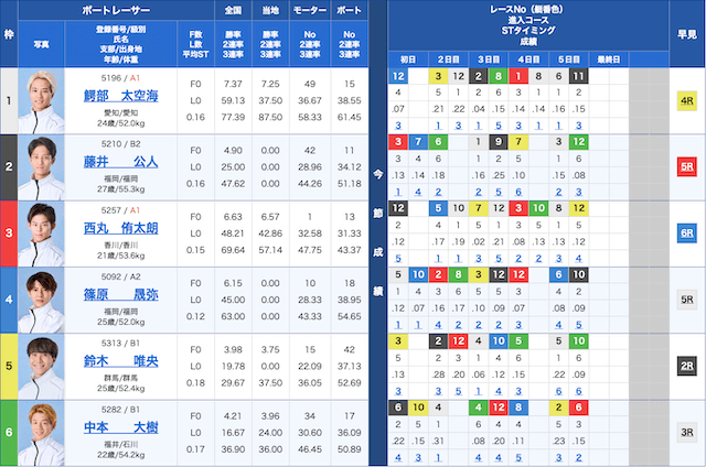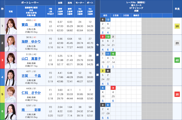 宮島競艇は、干満差によるスタートの難所として有名な競艇場です。 そのため、いくら実力がある選手でも走り慣れていないと不調気味になりやすい傾向があります。 よって、潮見表で干満差はもちろん、展示でスタートタイミングがつかめているか確認してから勝負しましょう。