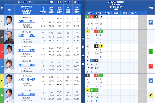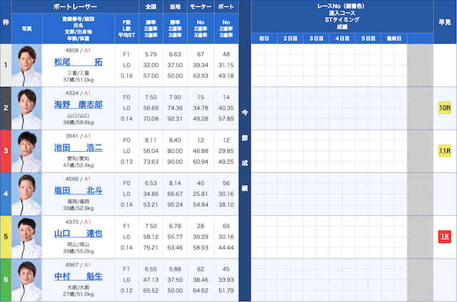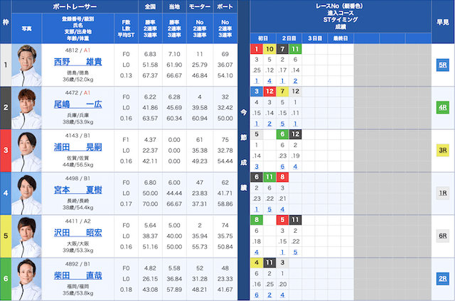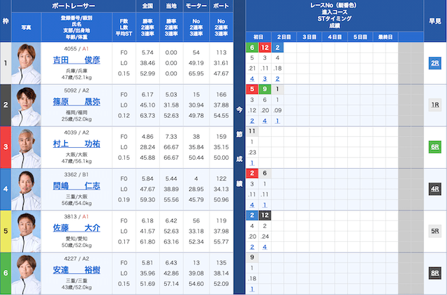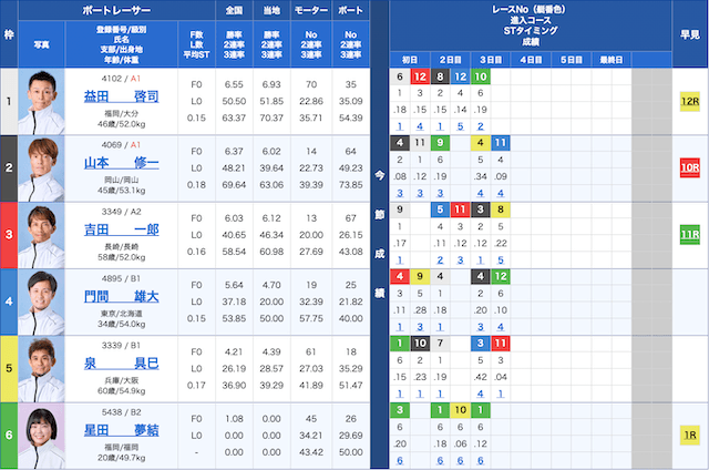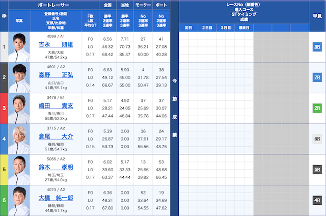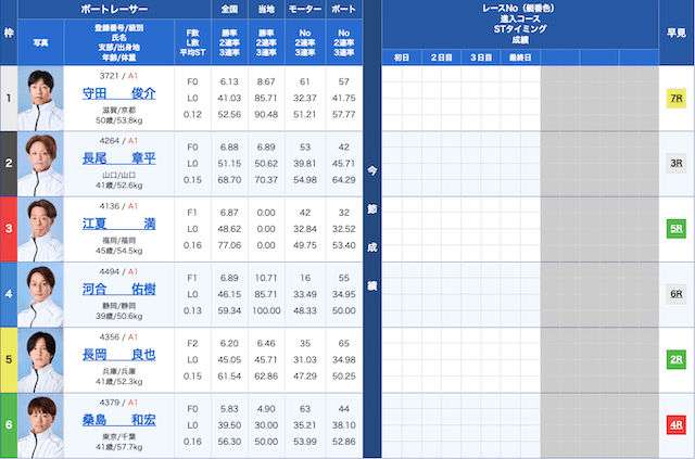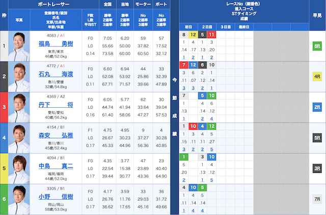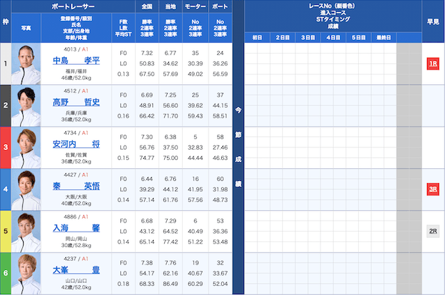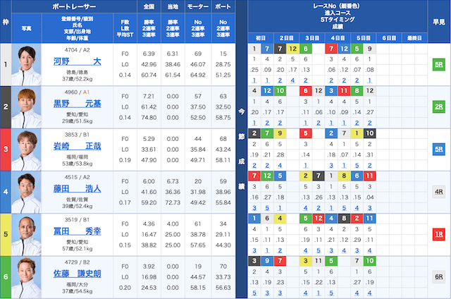 児島競艇6Rの鉄板予想