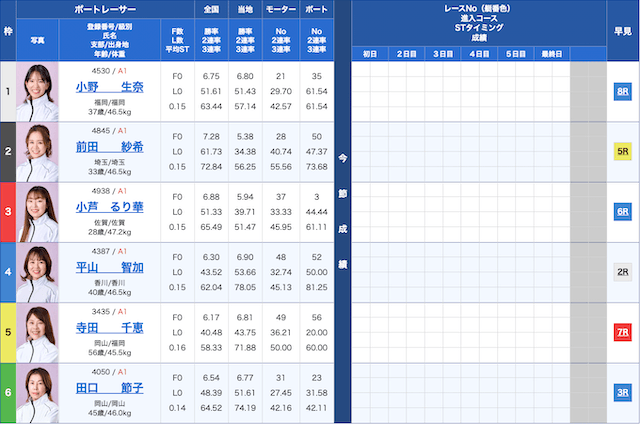 児島競艇5Rの鉄板予想