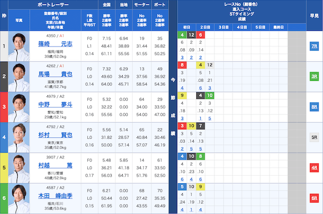 鳴門競艇6Rの鉄板予想