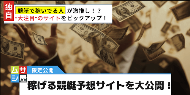 ムサシ屋では競艇予想サイトを徹底検証しており、その中で安全性・予想精度・配当の高さなどからおすすめできる本物の競艇予想サイトを厳選しているので、そちらをご参照ください。