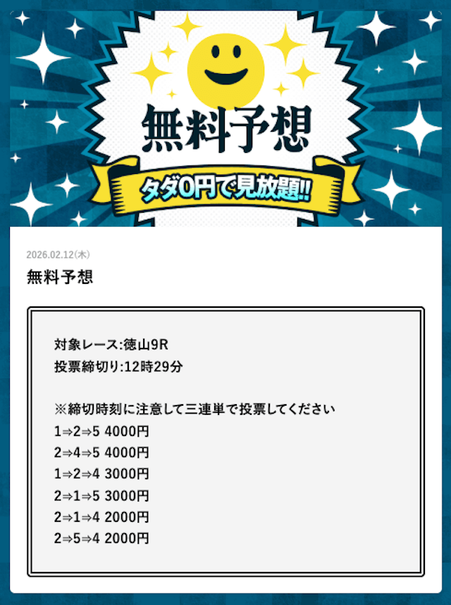 | 2月12日 | 徳山9R | 三連単 | +27,900円 | |