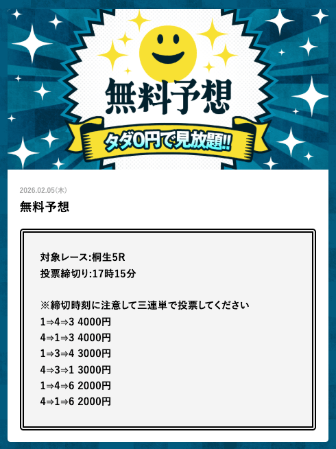 | 2月5日 | 桐生5R | 三連単 | +32,600円 | |