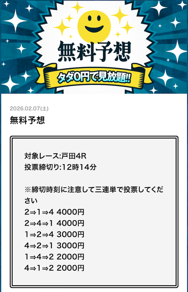 幸せボートの無料予想の結果