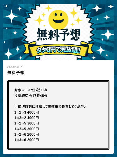 | 2月9日 | 住之江6R | 三連単 | +38,200円 | |