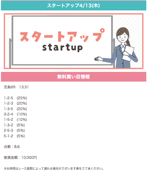 - Q:有料予想に参加しないのですか?A:無料予想で負けている時点で有料の期待値はかなり低いという結果が出ています。なので、参加する必要はありません。